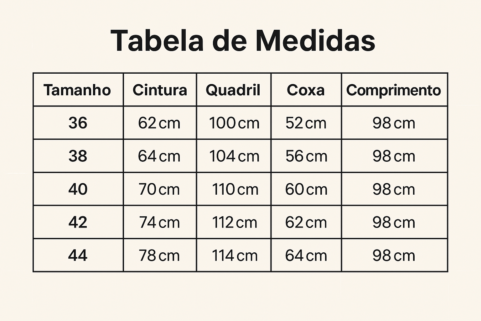 📏 Tabela de Medidas: